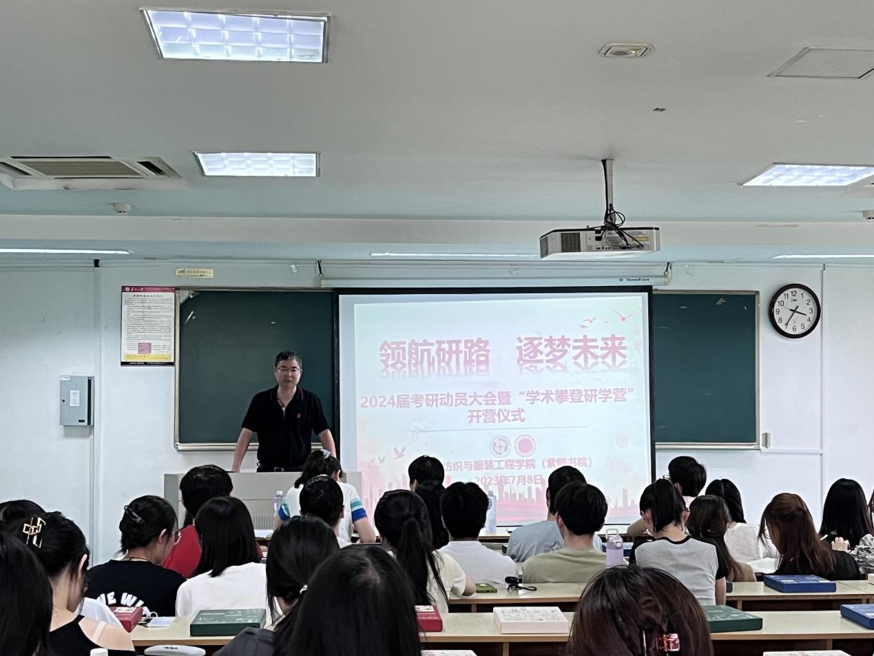 虞岚介绍了学院近两年本科毕业生的就业升学情况,详细介绍了“学术攀登研学营”系列活动。学院依托“一站式”学生社区资源,打造2024届专属研学互助社区,精心策划了“导生领航”研究生导生导学计划、“学长学姐说”经验分享沙龙、“纺云织梦 启迪科研”研究生学术论坛、专业课备考攻略、基础课阶段性模考、“互助共学”相约自习室、“自律之星”21天搞定英语单词、“生涯树洞”云上紫卿漫谈等八大研学菜单,为纺服学子的研学之路精准导学、温馨护航。