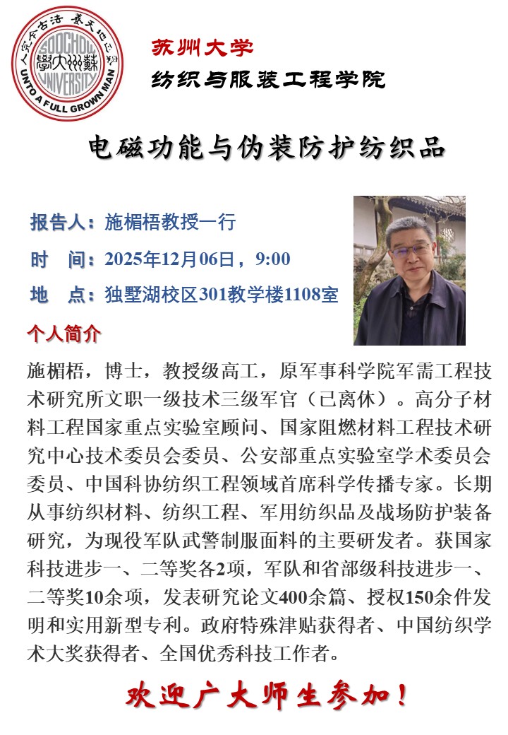 国产av 讲座报告:电磁功能与伪装防护纺织品