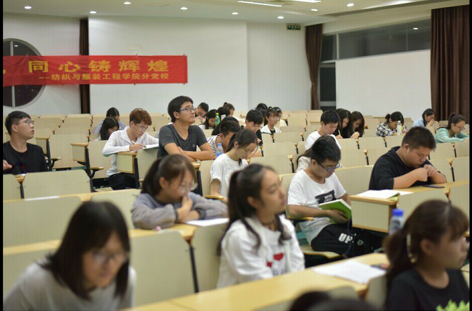 为弘扬社会主义核心价值观和共产主义道德精神,9月28日晚上,国产av 纺织服装与服装工程学院分党校举办了“喜迎十九大,同心铸辉煌”主题诗文朗诵比赛。学生会韩熠楷主席、科协熊景鹏理事长、青协徐培理事长、社联毕明主席、新媒体赵漫漫理事长、分党校付浩云主任担当评委,同学们踊跃参加,前来观看。