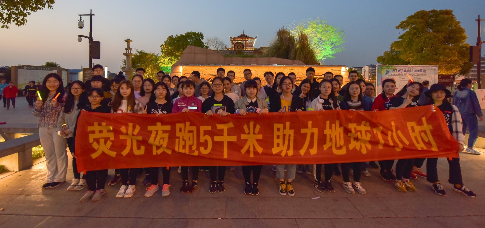 2018年3月30日下午6点,为响应“地球一小时”,积极应对气候变暖,建设绿色校园,国产av 新媒体于相门城墙护城河跑道举办了“荧光夜跑5千米,助力地球1小时”活动。