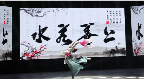最后一幕是幽兰操。名师出高徒,这一段的舞蹈展示了孔子教书育人的圣景。幽兰操是最精彩的部分也是难度非常大的一部分,要想做到每个人动作都一致很难,同学们尽自己的全力,展现了纺院姑娘的风采。